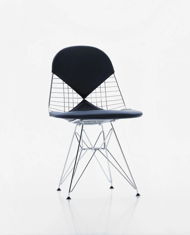 Dating to the mid-20th-century, our French metal chair hails from the offices of a Paris museum – a work of modern art in its own right. With a nod to iconic design forms, it has a scooped seat and curved back made from heavy gauge wire grids padded with optional leather-clad cushions, sold separately. Adjustable seat height and lumbar support adapt to each individual. Six ball casters make it as agile as it is comfortable.